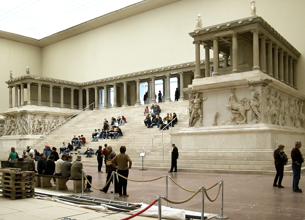 The Pergamon Altar was probably constructed around 180BC to celebrate a Pergmene victory over the Galatians. Pergamon was an Ancient Greek city near the Aegean Sea. In modern times it is now part of Turkey. In 1877 the German Empire was keen to have cultural exhibitions to match the British (think Elgin Marbles). The excavation of the altar commenced soon after with the Ottoman Empire vaguely agreeing with a transfer to Berlin. It now resides on Museum Island in that city, where it survived WW2 and the Cold war. It is a massive and incredibly complete monument. When I visited in the 2000s it was essentially a climbing wall. It is now closed for renovation and will reopened to the public behind glass. #raidersofthelostark #letsmakelemonade