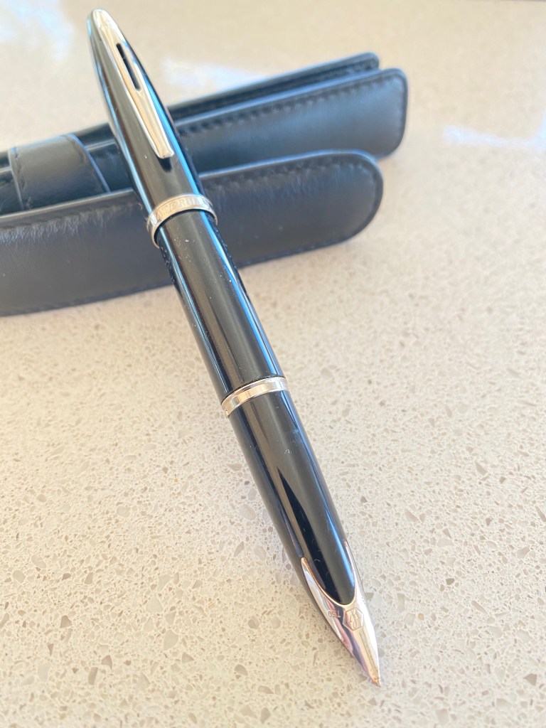 Above is my Waterman Carene. It has an archetypal inlaid nib and a strong art deco vibe. The cap band is engraved with made in France, but that has not always been true. Lewis Edson Waterman, resident of New York, founded the brand in 1884. He is one of several people from this period who claim to have invented the fountain pen, with his patent of his three fissure feed. Prior to this, all pens were dip nibs, ink bottles, impractical and messy. These pens went in your pocket. Waterman pens was bought by the French pen company, Bic in 1956. Who says that you would never catch me writing with a Bic! #pensnob #letsmakelemonade
