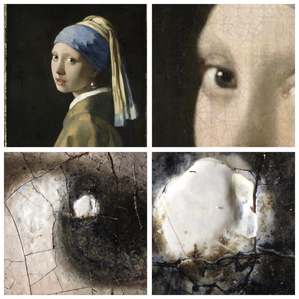 How do you bring a painting to life? How do you indicate humanity and emotion? The eyes are literally vital, be it an image of birds, animals or humans. The character of an artwork often comes down to something as small as the highlight in the eyes. Get the correct shape, size and position of the glint and the image has life. Vermeer has been called out for painting with contrived optical systems to guide his almost hyper-realistic works. That said, he still had to get the eyes right. Recently, his most famous painting has been scanned to produce a 10 billion pixel digital image. This produces incredible detail of each stroke and application of paint. As you can see the eye contains a single perfect blob of white paint as a highlight. He wasn’t all about camera obscuras. #theeyeshaveit #letsmakelemonade