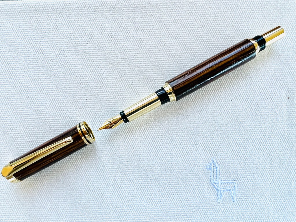 Fountain pen collecting is having quite moment. The same for lockdown home art, crafts and hobbies. Many of you will have seen pens similar to the one shown. They are produced and sold by smaller scale makers. Most of these pens are similar in design, but all are unique. They are made by individually by keen craftspeople, usually on a backyard shed lathe, with a chisel held in the hand. The writing mechanisms are uniform, but the materials and finish are certainly not. This particular pen is the work of Bob’s Pens of Distinction, and reflects his personal choices and passions. The really great thing is that this is an individual pen, made by a specific individual, chosen as a gift by an individual and used by me as an individual. I love it and I love the whole concept. #thankschristine #timetobuyalathe #letsmakelemonade