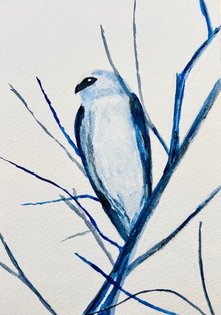 This year we have a new family in the neighbourhood at Aldinga. In a pine tree adjacent to our property is a nest belonging to his beauty. It is a Black-shouldered kite, Elanus axillares. The BSK is a small raptor found in open habitat across Australia. This species forms monogamous pairs for nesting and breeding. They search for prey in open grasslands by a distinctive hover, scan and vertical strike. It has been amazing to watch. This bird looks blue because I painted it. #blueisonme #letsmakelemonade