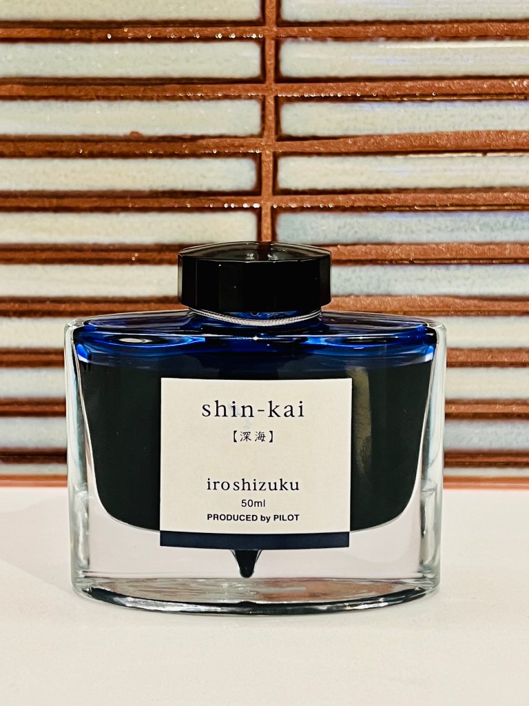 Blue is an important ink colour. It is favoured for the signing of significant documents, coronation oaths being a notable recent example. The reason being that digital copies, prints and faxes tend to be black. See the blue signature and you know which is the original. Read this blog regularly and you will be aware that the Pilot Pen company is a big deal for nerds like me. My Pilot Custom Heritage 92 demonstrator is filled with this cool ink. Shin Kai is one of the 24 colours of the Pilot Iroshizuku ink range. In Japanese, Shin Kai means deep sea. Iro is colouring and Shizuku means droplet. This ink is famous as being the particular favourite go to colour for the social media influencer, Brad Dowdy the Pen Addict. #thetilesinthebackgroundarealsojapanese #letsmakelemonade