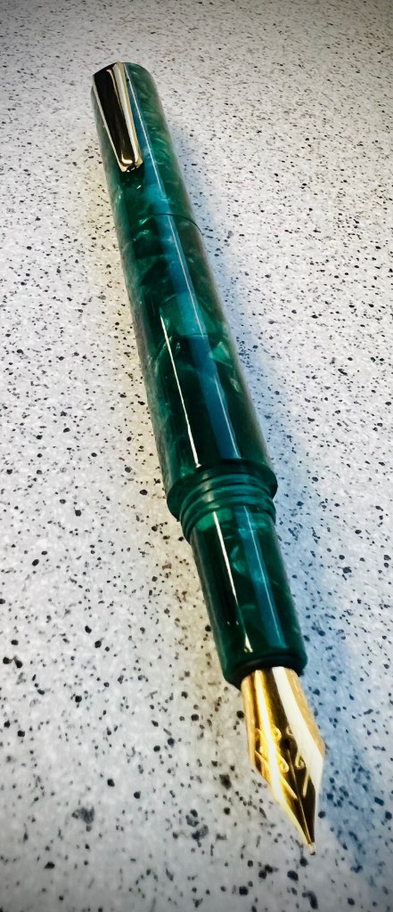 Who doesn’t like a new fountain pen for Christmas. The problem is what do you get for a pen nerd like me? I am not sure I even know the answer to this. So, a family member came up with this beauty. I love it. This is a an Attache fountain pen, a pocket version, in a festive acrylic called Jade Forrest. I am having quite a moment with small pocket pens, their ability to fold up is perfect for travel. For me this is the perfect Christmas pen. #thankyouellie #letsmakelemonade