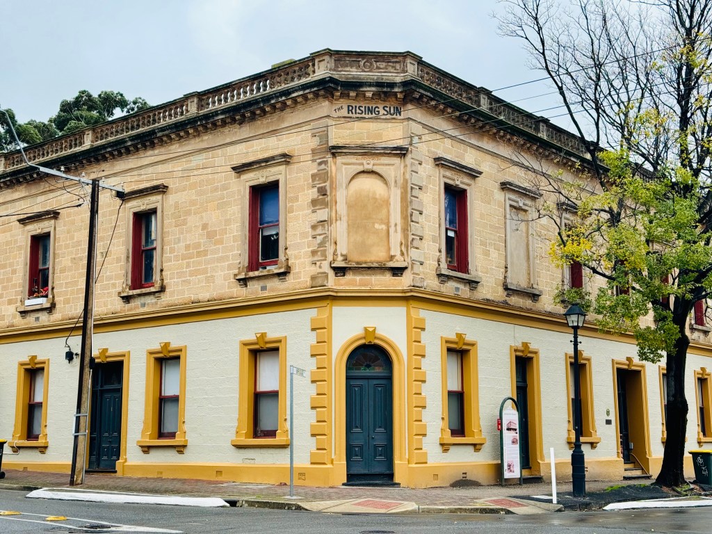 I feel cheated. For some years a group of my medical colleagues has gathered every month of so for a casual dinner. A favourite venue has been the atmospheric and apparently historic Rising Sun Hotel, located in Bridge Street Kensington. Recently Penny and I were in Kensington, stretching our legs on a winter morning walk. As we strolled down Bridge Street I was stunned to encounter the above building, clearly marking Rising Sun Hotel. Immediately I did my research. This was the original site of the Rising Sun Hotel, being built and opened in 1882. It was one of the most luxurious pubs in Adelaide, boasting over 34 guest rooms and a high end dining room. Sadly, introduction of electric trams in 1909 along the Norwood Parade, bypassed the main streets of Kensington. The original hotel was closed within a decade. The pub we visit is a 19th century residence, renovated and repurposed in the 1980s. #historyisrewrittenbythevictors #letsmakelemonade
