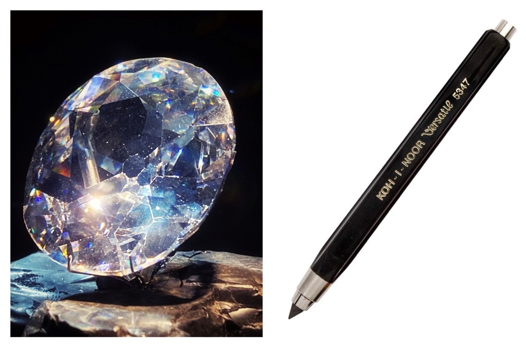 Koh-I-Noor is Persian for Mountain of Light. In modern parlance it usually refers to the most famous diamond in the world. The Koh-I Noor gem seems to have originated in India, but is currently part of the British Crown Jewels. It potentially falls into the category of Stuff the British stole, being variously described as a gift, treaty settlement, business deal, or loot. Fortunately, the Koh-I-Noor Versatil 5347 5.6mm clutch mechanical pencil is a much more straight forward affair. Koh-I-Noor is a Czech pencil manufacturer. This large bore lead holder is designed to use Gioconda compressed charcoal and graphite chalks. It actually has a particular use. Trace any drawing or image and the back of the paper can be easily covered with drawing grade graphite with this pencil. Re-trace the image and you have the perfect base drawing for a watercolour painting. #forthosewhopaintbutnotdraw #letsmakelemonade